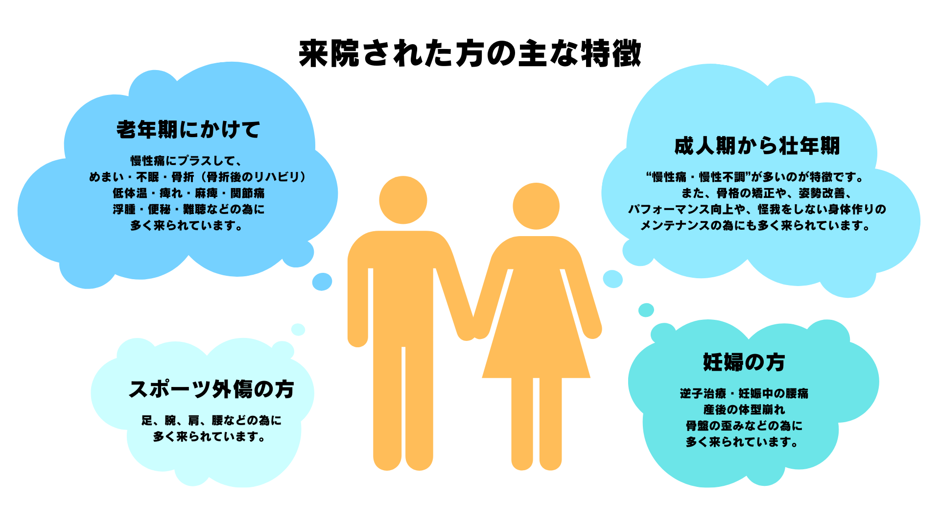 当院では厚生労働省認可の国家資格を有した施術者が治療を行い、安全安心の場所で、患者様一人一人に最適な治療を提供する治療院です。